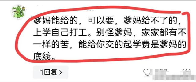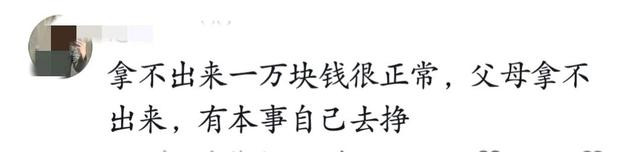 另一位网友带着点讽刺说:“一万块钱都拿不出来,为什么要生孩子,继承贫困吗?”这两位网友说的很有道理,如果你嫌父母没钱,那就去自己赚!