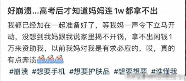 帖子的标题是《好崩溃…高考后才知道妈妈连1w块都拿不出来》。
